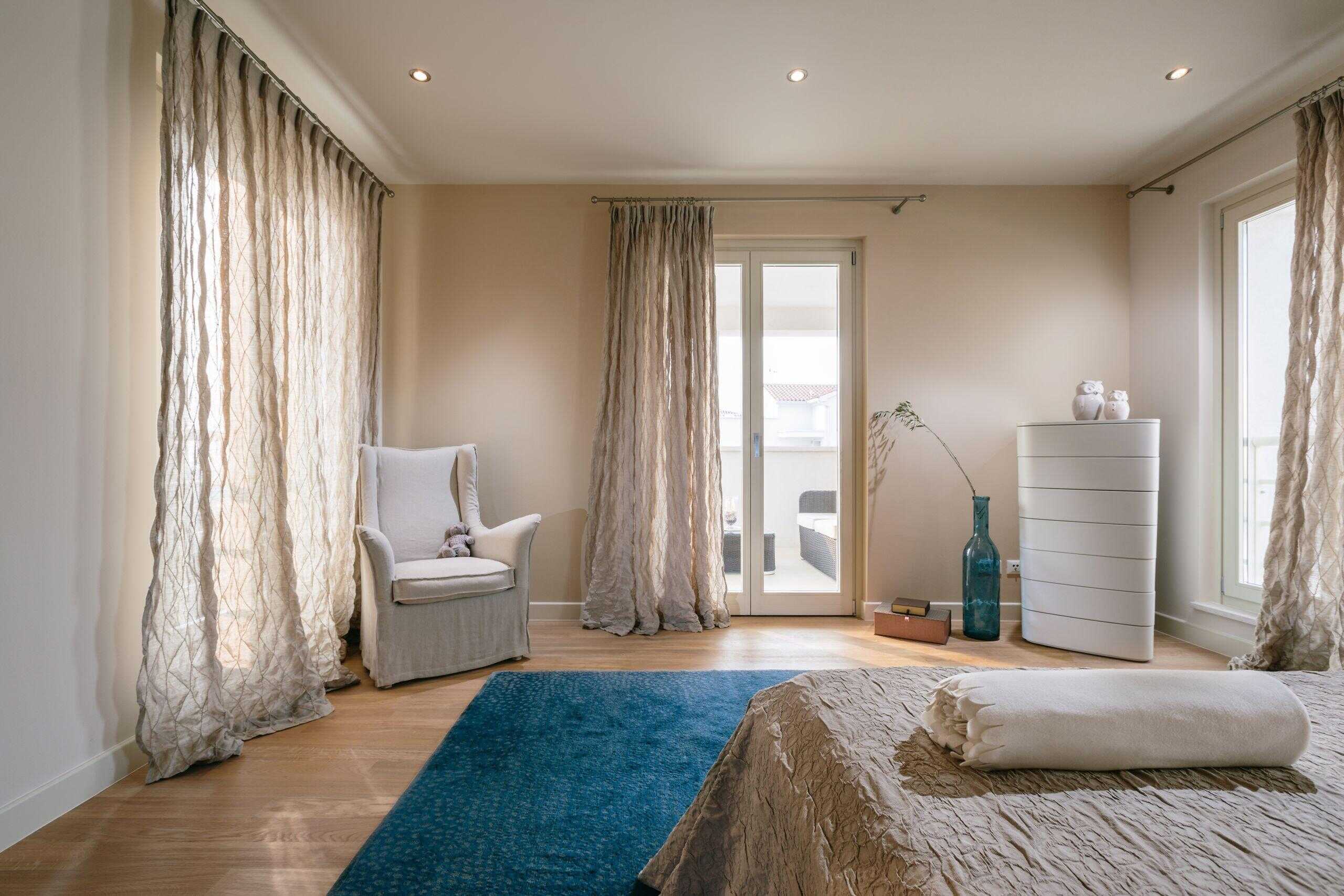 The central ground floor rooms consist of a modern, fully equipped kitchen and a dining room dominated by a round wooden table with a fascinating design. From there, two staircases lead to the "comfort zone" – living room area filled with a maritime, almost a marine atmosphere. Besides one bedroom on the ground floor, there are two more on the first floor. The master bedroom has a spacious dressing room and a large terrace which is connected to the swimming pool area by a staircase, and one’s sharp eye will notice a refined and original decorating style for both, the master bedroom, and all the others bedrooms in the villa. Every room has a private bathroom, and the main bedrooms’ is especially attractive, dominated by a massive oval freestanding bathtub, while the second bathroom on the first floor stands out with its originality, with a shower cabin wall made of real stone pebbles! A magical space at the very top of the villa is a rooftop "lounge" terrace with a view of the surrounding olive trees and the sea coast, a zone of privacy and peace, ideal for evening relaxation and socializing.